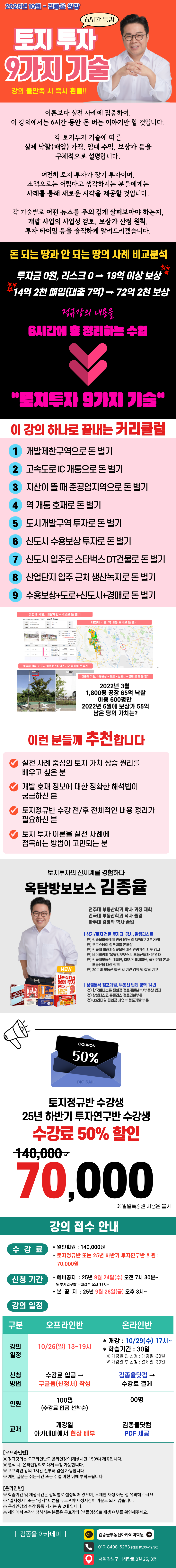 앞으로 9가지 기술 뼈대를 기억하시고, 공법 이론 살을 붙여 토지투자하시기 바랍니다."